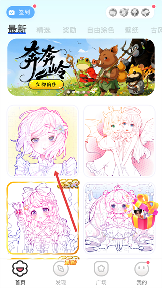 2、進(jìn)入應(yīng)用首頁(yè)后,選擇目標(biāo)圖案(如粉色頭發(fā)的人物圖案),進(jìn)入對(duì)應(yīng)的拼圖游戲操作界面。