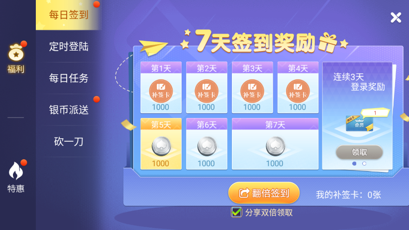 2、進入到福利頻道中的每日簽到,點擊雙倍分享或者取消勾選后即可完成簽到。