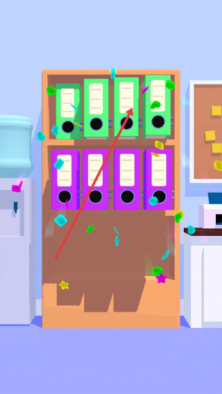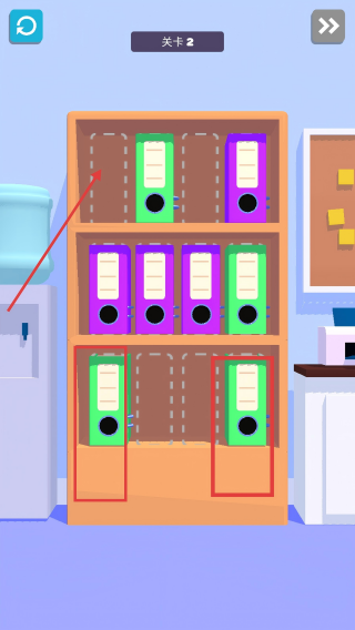 4、補(bǔ)全所有空缺位置的文件夾,使書架擺滿,即可通關(guān)關(guān)卡2。