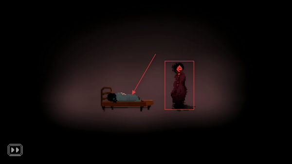 2、當(dāng)床邊出現(xiàn)穿紅衣的角色時,仔細(xì)觀察其與床上角色的互動,留意可能的劇情觸發(fā)點。
