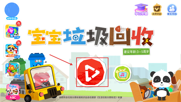 1、點擊【紅色播放按鈕】進入關(guān)卡,開啟“寶寶垃圾回收”主題的分類任務(wù),學(xué)習(xí)住建部《生活垃圾分類標志》標準。