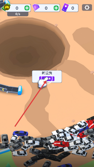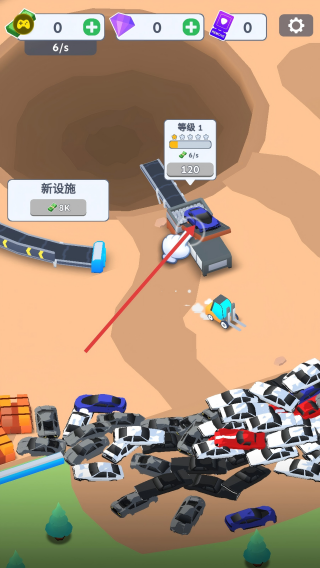 1、點擊【新設施】按鈕,可解鎖新的游戲設施,助力后續(xù)處理車輛等操作。