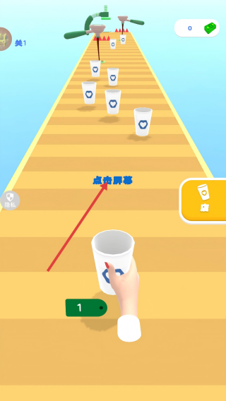 1、點(diǎn)擊屏幕,控制杯子移動(dòng),接住傳送帶上的液體,注意避開障礙物,積累液體量。