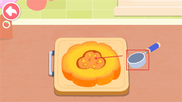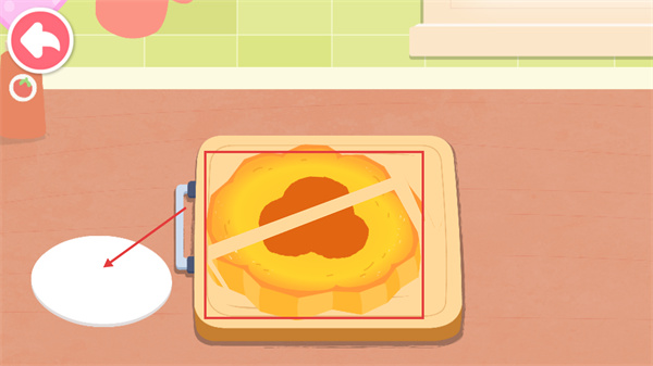 2、使用【小鍋工具】對糕點中心區(qū)域進行操作,完成該步驟的食材處理,推進食物制作的流程進度。