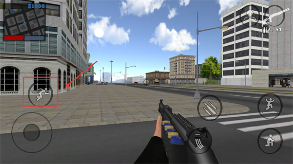 3、點擊左側(cè)【奔跑按鈕】可進(jìn)入疾跑狀態(tài),快速接近目標(biāo)或撤離戰(zhàn)斗區(qū)域,提升場景機(jī)動效率。