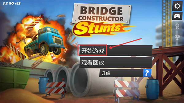 1、進(jìn)入【BRIDGE-CONSTRUCTOR-Stunts】后,點(diǎn)擊【開始游戲】進(jìn)入關(guān)卡。