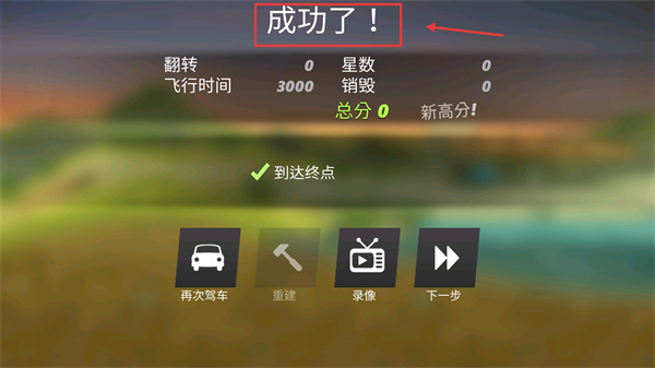 4、達(dá)成【到達(dá)終點(diǎn)】后顯示【成功了!】,可選擇【下一步】進(jìn)入新關(guān)卡,或通過【再次駕車】重試優(yōu)化成績。