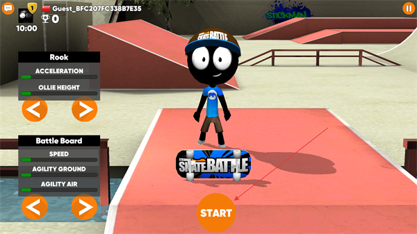 3、對(duì)局前調(diào)整角色屬性,設(shè)置后點(diǎn)擊【START】開(kāi)啟滑板對(duì)決。