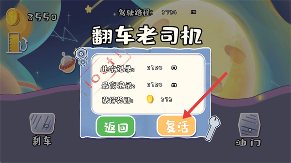 4、若車輛翻車,可查看【此次記錄】,選擇【復(fù)活】繼續(xù)挑戰(zhàn)。