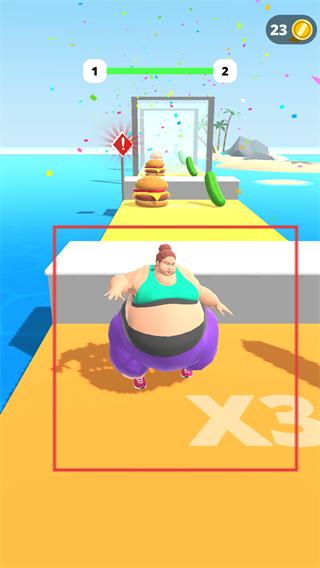 3、拾取食物后觸發(fā)【X3】特效,角色體型變化,持續(xù)收集健康食物,提升瘦身進(jìn)度至目標(biāo)值。