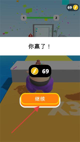 4、完成關(guān)卡后顯示【你贏了!】,獲得【69】金幣獎(jiǎng)勵(lì),點(diǎn)擊【繼續(xù)】按鈕進(jìn)入下一個(gè)瘦身關(guān)卡。