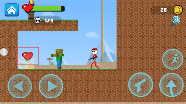 3、戰(zhàn)斗中若血量不足,可拾取場(chǎng)景中的紅心道具回復(fù)生命值,同時(shí)收集敵人掉落的金幣資源。