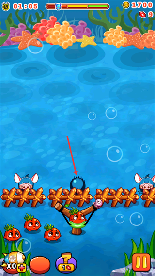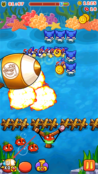 4、瞄準(zhǔn)【海盜豬豬】之間的空隙發(fā)射蔬菜,利用彈射路徑同時(shí)攻擊多目標(biāo),減少柵欄承受的傷害。
