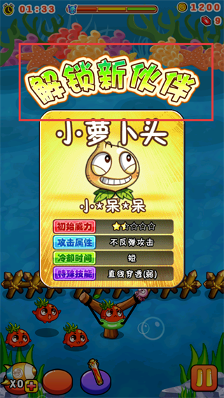 3、解鎖新伙伴【小蘿卜頭】,其【初始體力】屬性適配前期關卡,【攻擊屬性】為“不反彈攻擊”,可針對性使用。