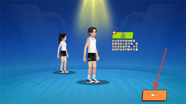 1、查看【小帥】的初始屬性說明,其擊球力量中等但速度快,接球時要及時觸發(fā)額外傷害,看完后點擊【確認】。
