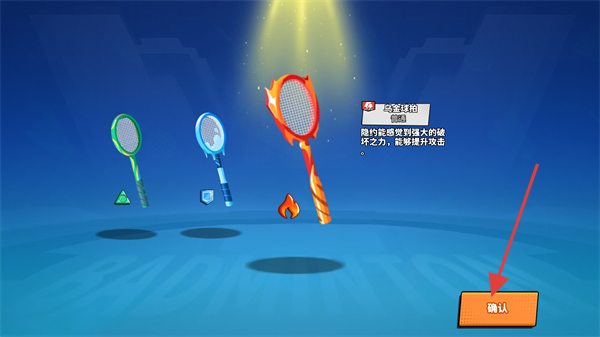 2、選擇【赤炎球拍】,它能獲得火焰的破壞之力來提升攻擊,了解球拍效果后點擊【確認】進入對局。