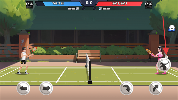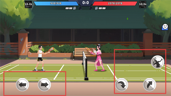 3、對局中用左側【左右箭頭】控制角色移動,右側【技能按鈕】釋放對應招式,配合移動調整接球位置。