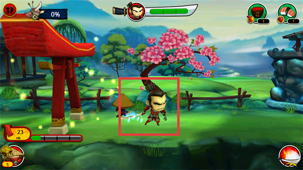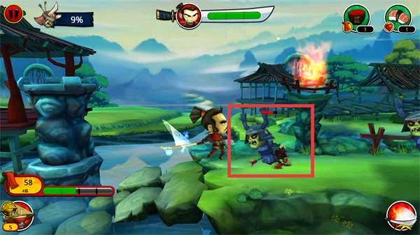 2、進(jìn)入關(guān)卡后操控武士移動,利用初始技能在場景中推進(jìn),靠近敵方單位觸發(fā)戰(zhàn)斗。