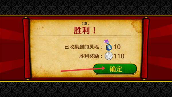 4、通關(guān)后獲得【10靈魂】【110貨幣】獎勵,點(diǎn)擊【確定】領(lǐng)取獎勵并推進(jìn)流程。