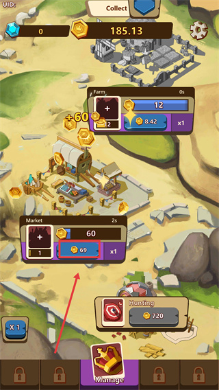 2、升級(jí)【Market】模塊提升效率,獲取的資源可用于解鎖后續(xù)的【Hunting】等新玩法。