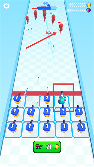 2、將相同等級(jí)的【防御單位】合并升級(jí),提升攻擊強(qiáng)度,增強(qiáng)防御陣線的輸出能力。
