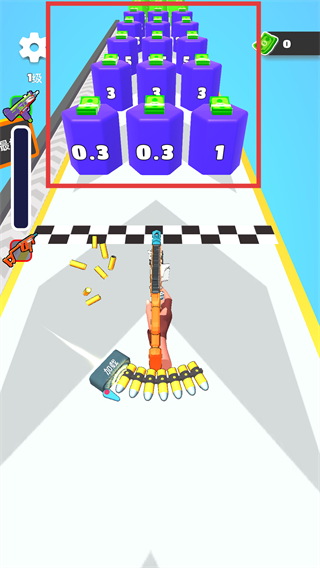 4、關(guān)卡末尾射擊帶有數(shù)值的【紫色容器】,完成關(guān)卡挑戰(zhàn),推進(jìn)子彈進(jìn)化流程。