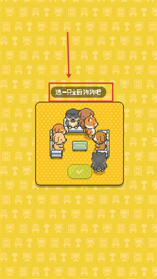 1、在初始界面選擇一只狗狗作為主廚,確定核心操作角色以開啟烹飪流程。