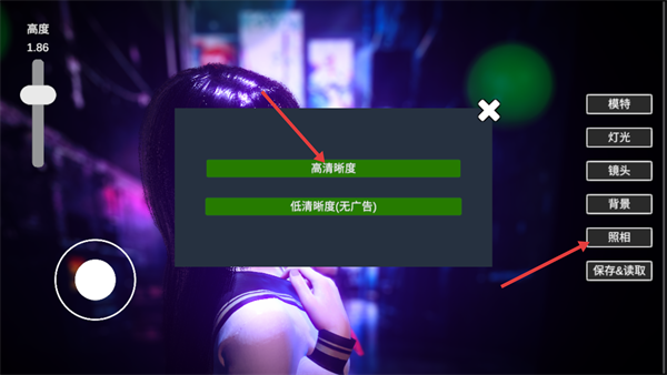 1、復(fù)刻真實(shí)攝影操作邏輯,支持調(diào)節(jié)光圈、快門、白平衡等核心參數(shù),搭配多種布光模式,還原專業(yè)影棚體驗(yàn)。