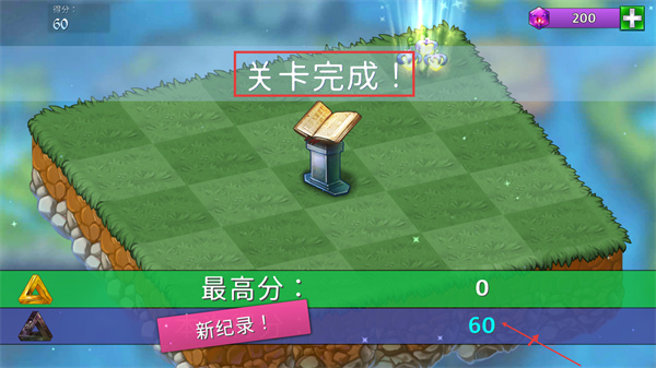 4、屏幕顯示【關(guān)卡完成】并結(jié)算分?jǐn)?shù),領(lǐng)取【200】寶石作為通關(guān)獎(jiǎng)勵(lì)。
