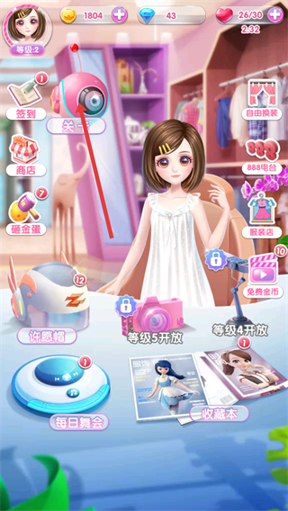 1、通過關卡進行換裝,解鎖【衣櫥】收集服裝,完成裝扮任務贏獎勵壯大衣櫥。