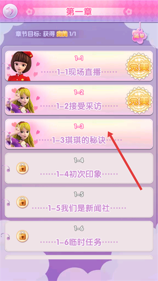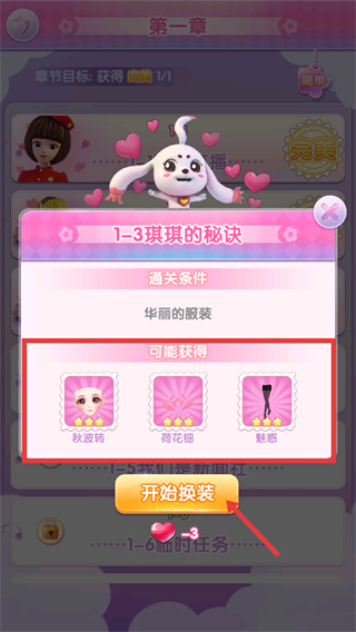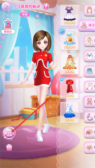 2、按順序完成章節(jié)任務,挑戰(zhàn)【琪琪的秘訣】換裝獲取完美評價解鎖新內(nèi)容。