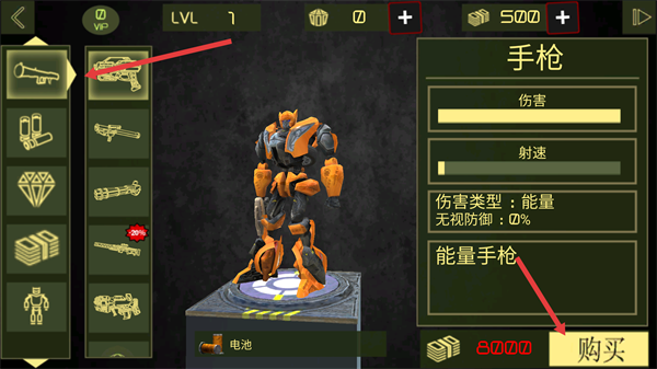 3、戰(zhàn)斗掉落收集機(jī)制豐富成長(zhǎng)路徑,擊敗敵人后可收集紙幣等資源,用于機(jī)器人升級(jí)改造與裝備購(gòu)置,形成戰(zhàn)斗與成長(zhǎng)的良性循環(huán)。