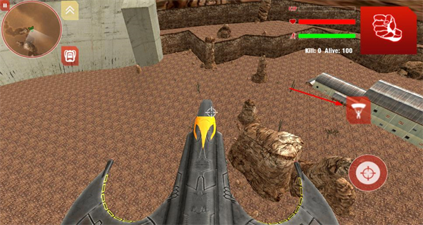 3、場景中出現(xiàn)物資,操控左側(cè)移動按鍵,控制角色向物資方向移動,靠近物資后完成拾取,補充自身資源儲備。