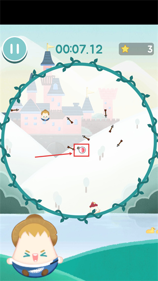 2、關(guān)卡中需關(guān)注【箭矢】的下落軌跡,及時移動角色避開,每成功躲避可獲得對應(yīng)【星星】獎勵。