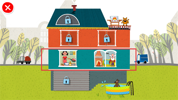 2、四層主題樓層還原真實(shí)家庭場(chǎng)景,包含客廳、洗衣房、兒童房、車庫(kù)等區(qū)域,搭配10個(gè)可愛(ài)角色與百種道具,探索空間豐富多樣。
